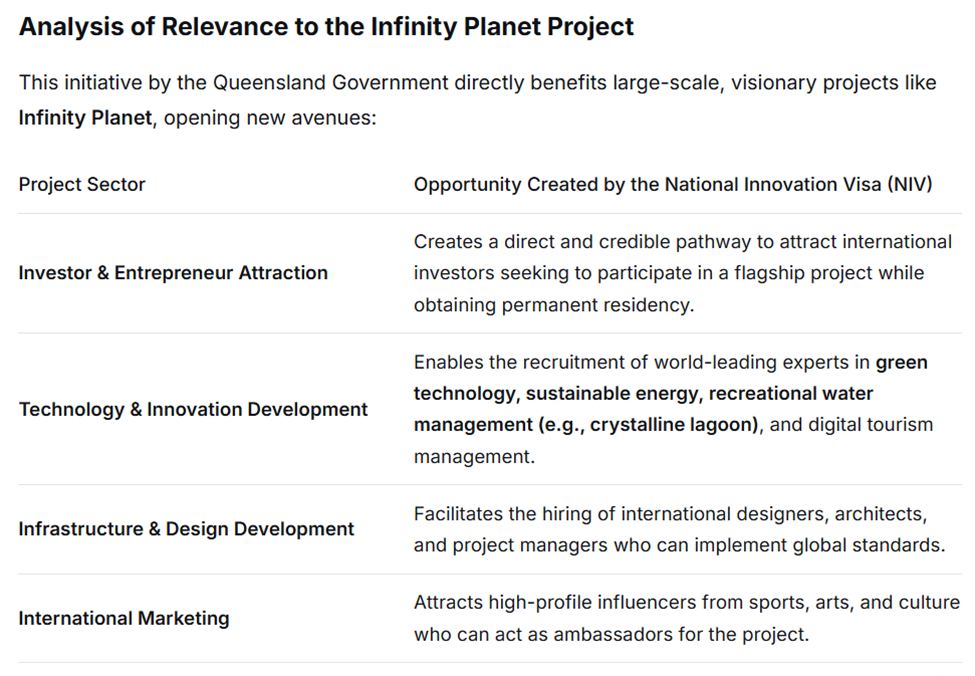GovernmentThe Queensland Government has taken a major strategic step towards strengthening the economy, fostering new industries, and supporting transformative projects like “Infinity Planet” by officially announcing the opening of the application process for global talent under the National Innovation Visa (NIV).